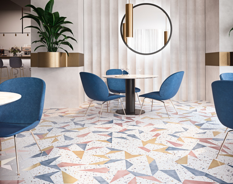 Proizvođači, predstavljajući svoje prijedloge trendovskih pločica za 2022. godinu, a koje s veseljem prati i Stilker Store, ponovno su sve iznenadili inovativnim rješenjima, baš kao i prijašnjih godina. Uz klasični, rekli bismo tradicionalni terrazzo s mramornim, kvarcnim ili i granitnim agregatom, predstavili su, između ostalog, i terrazzo pločice s prozirnim staklenim agregatom, kao i terrazzo sa staklenim strugotinama.