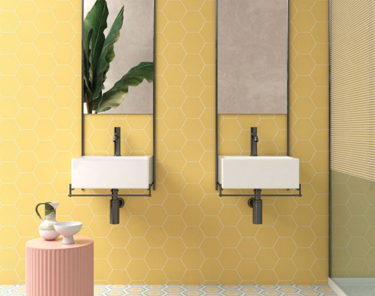 Žuta najčešće dolazi u toplijim nijansama koja graniči s narančastom: oker, curry, senf i jantar. Nježne nijanse žute također su prisutne u kolekcijama keramičkih pločica s efektom terakote: ovaj se materijal dobro slaže s klasičnim ili rustikalnim stilom, ali je i vrlo profinjena alternativa čak i u suvremenim okruženjima. Nježnije nijanse žutih pločica koje graniče s toplim bijelim i bež nijansama možda su samo naizgled manje upadljive, ali su zato iznimno elegantne.