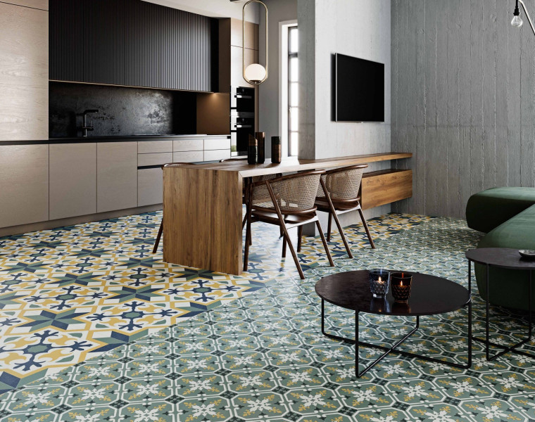 Žuta boja je svijetla, ekstrovertna i dinamična. Žuti pod od keramike ili porculanskog kamena može biti vrlo upečatljiv ako je jarko žute boje, ali odabir blijeđe nijanse – također na temelju osvjetljenja prostorije – daje potpuno drugačiji rezultat. Stoga su žute keramičke pločice prikladne za svaku prostoriju u kući – uključujući i spavaću - a ne samo za kupaonicu i dnevni boravak, kako mnogi misle.