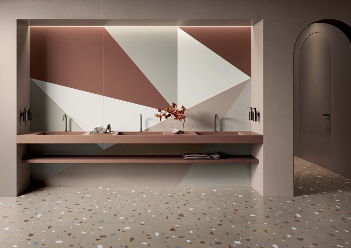 Slijed prirodnih boja generiranih svježom estetikom modernog dizajna i obogaćenih polikromijom reflektirajućih pahuljica prirodno uklopljenih u beton zadivljuje dizajnere interijera.